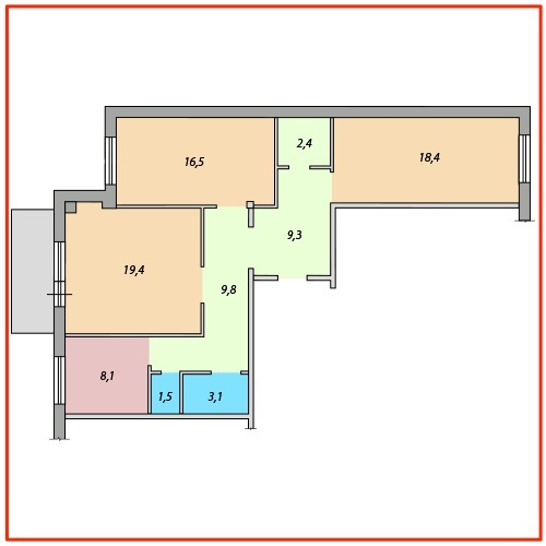 Стены — жилые комнаты, коридор, кухня — шпатлевка, обои санузел — шпатлевка, водоэмульсионная окраска.